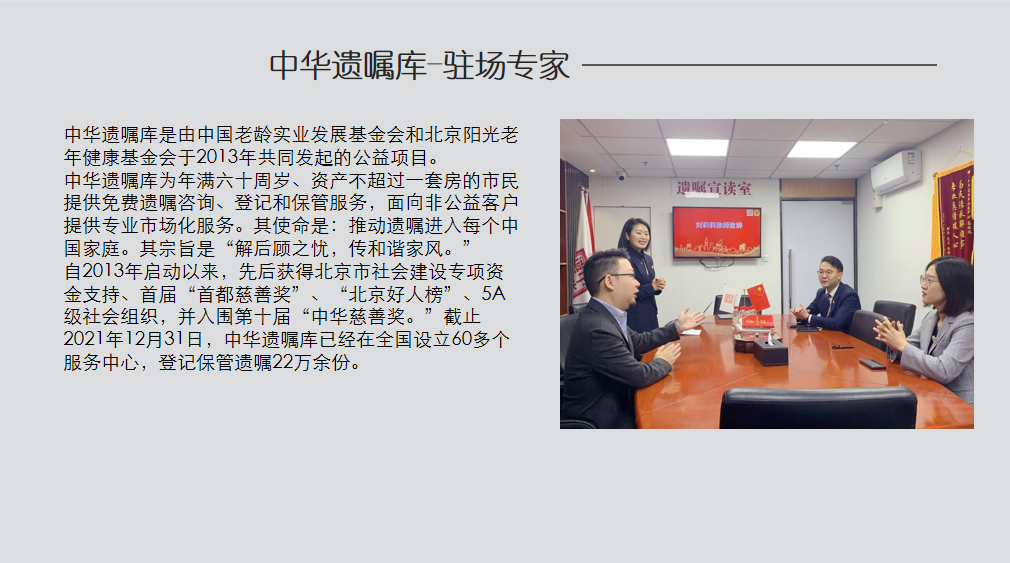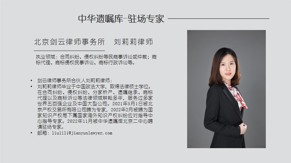 高级合伙人,刘莉莉,律师,担任,中华遗嘱库,驻场专家, 日期:2023-02-13