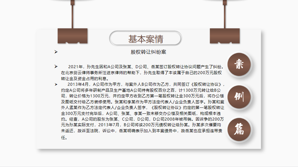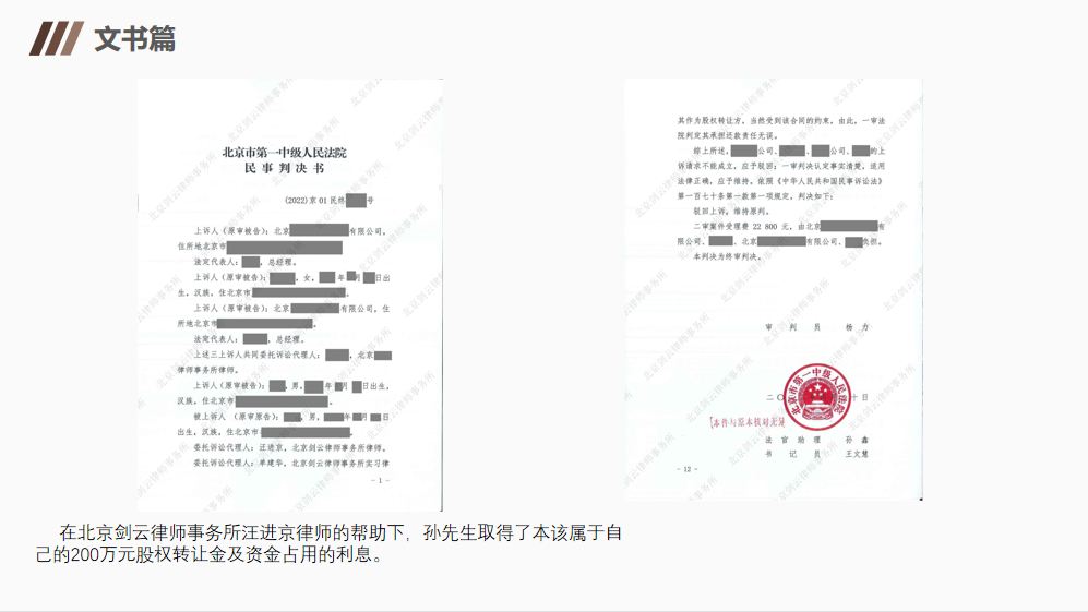 【成功案例】股权转让久悬未决,代理事主起诉获全胜 日期:2022-09-20